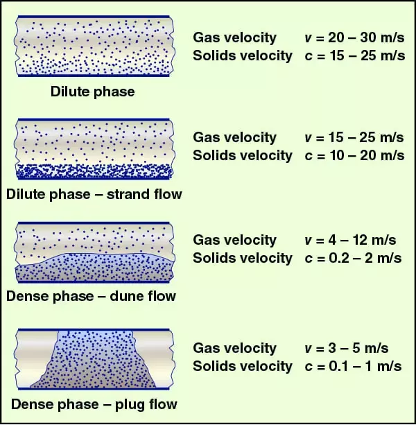 On distingue deux modes de transport pneumatique : la phase diluée et la phase dense. La phase diluée est la plus couramment employée pour convoyer de manière efficace des produits pulvérulents et peu abrasifs.